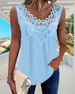 SPECIFICATIONS Top Type: Tank Top Style: Casual Material: Cotton Blends Neckline: Round Neck Pattern Type: Solid Color Sleeve Length: Sleeveless Fit Type: Regular Season: Spring,Summer Details: Patchwork,Lace Package Includes: 1 x Tank Top SIZE TABLE Size Bust Length CM INCH CM INCH S 97 38.19 65 25.59 M 101 39.76 66.5 26.18 ...