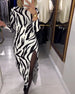 Slit Fitted Zebra Long-Sleeve Dress