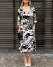 Elegant Three-Quarter Sleeve Printed Waist Dress