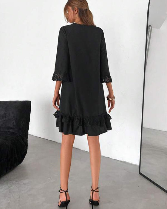 Elegant Three-Quarter Sleeve Printed Waist Dress