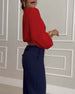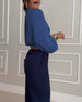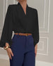 -23% Icon1 Fashion solid color V-neck lantern sleeve blouse