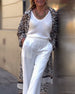 Leopard print lapel casual long coat