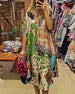 Colorful Printed Lantern Sleeve Loose Dress