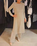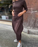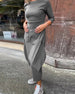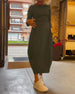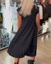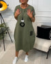 Round neck solid color pleated casual dress
