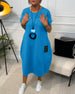 Solid color round neck long sleeve pocket dress