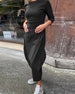 Fashionable solid color pocket irregular patchwork pants