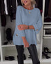 Fashion solid color round neck button pullover