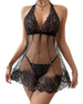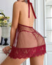 Icon1 Floral Lace Halter Babydoll Lingerie Dress With Thong