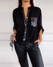 Paneled sequin button casual top