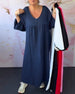 Icon1 Forest Style V-Neck Pleated Solid Color Dress