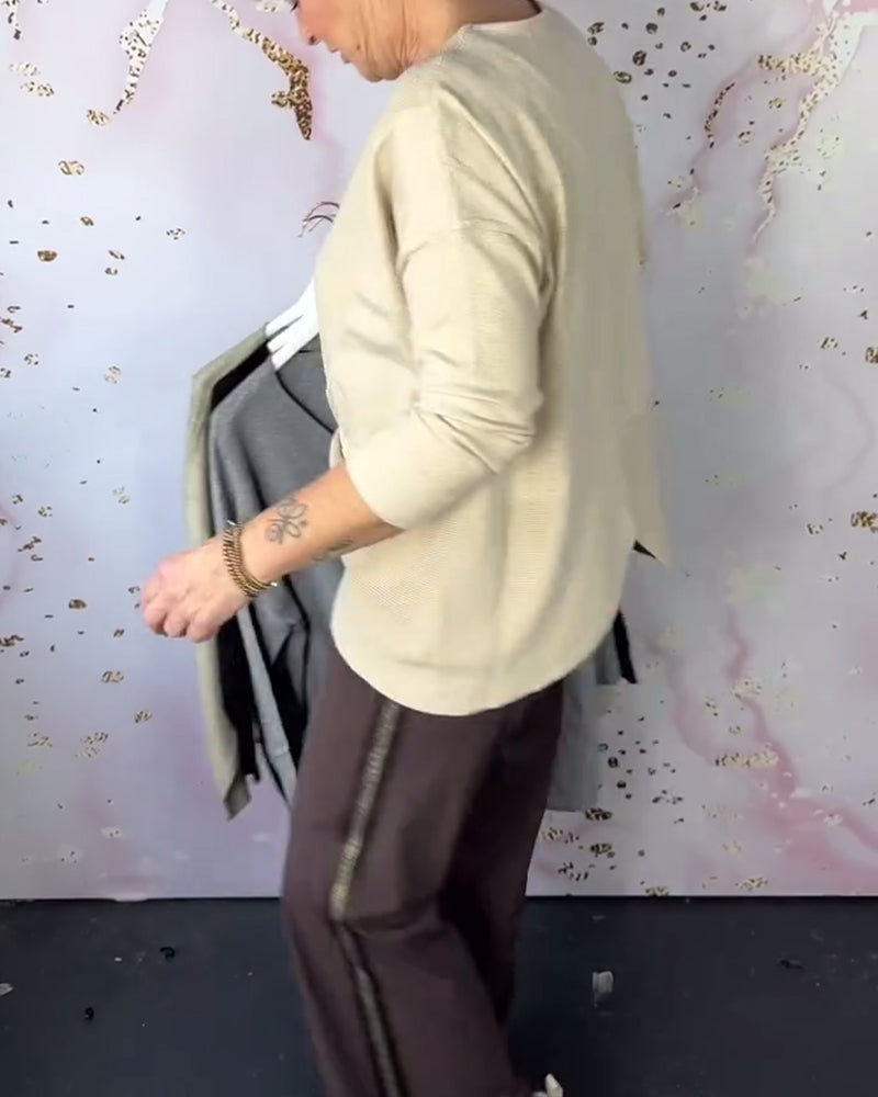 Fashion solid color round neck button pullover
