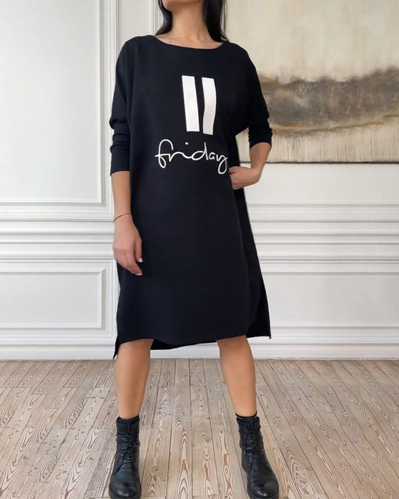 Simple letter print short sleeve casual dress