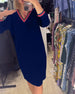 V-Neck Solid Color Waist Dress