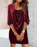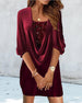 SPECIFICATIONS Style: Casual, Elegant Material: Sequins, Velvet Dress Type: Shift dress Dress Length: Above-knee Neckline: Square Neck Pattern Type: Solid Color Sleeve Type: Regular sleeve Sleeve Length: 3/4 Sleeve Details: Patchwork Fit Type: Regular Season: Spring, Summer, Fall, Winter Occasion: Daily, Party Package Includes: 1 x Dress SI...