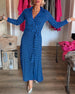SPECIFICATIONS Style: Casual Material: 35% Spandex, 65% Polyester Dress Type: A-Line Dress Length: Maxi Neckline: V neck_V Pattern Type: Print Sleeve Type: Regular sleeve Sleeve Length: Long Sleeve Fit Type: Regular Season: Spring, Fall Occasion: Daily Package Includes: 1 x Dress (With Belt) SIZE TABLE Size Bust Length CM INC...
