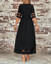SPECIFICATIONS Style: Casual, Vacation Material: 65% Polyester, 35% Cotton Dress Type: A-Line Dress Length: Maxi Neckline: Round Neck Sleeve Type: Regular sleeve Sleeve Length: Half Sleeve Details: See-through Fit Type: Loose Season: Spring, Summer, Fall Occasion: Daily, Vacation, Work Package Includes: 1 x Dress SIZE TABLE Size Bust Le...