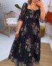 Floral print square neck elegant dress
