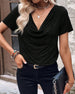 SPECIFICATIONS Top Type: Tops Style: Casual Material: Cotton Blends Occasion: Daily Neckline: V neck_V Pattern Type: Solid Color Sleeve Type: Regular sleeve Sleeve Length: Short Sleeve Fit Type: Regular Season: Spring, Summer, Fall Details: Shirred Package Includes: 1 x Top SIZE TABLE Size Bust Length CM INCH CM INCH S 95 3...