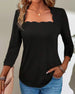 SPECIFICATIONS Top Type: Tops Style: Casual, Elegant Material: Cotton Blends Occasion: Daily, Vacation, Work Neckline: Square Neck Pattern Type: Solid Color Sleeve Type: Regular sleeve Sleeve Length: Nine Points Sleeve Fit Type: Regular Season: Spring, Fall Package Includes: 1 x Top SIZE TABLE Size Bust Length CM INCH CM INC...