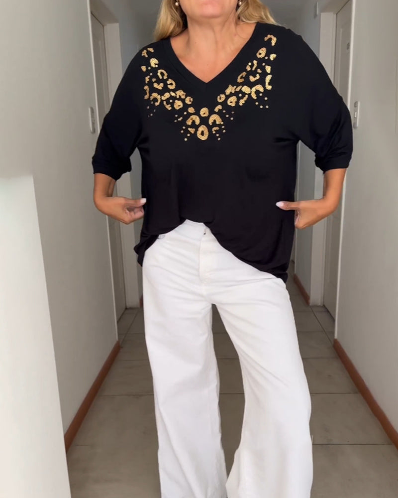 SPECIFICATIONS Top Type: Tops Style: Casual Material: Cotton Blends Occasion: Daily, Vacation Neckline: V neck_V Pattern Type: Print Sleeve Type: Regular sleeve Sleeve Length: 3/4 Sleeve Fit Type: Regular Season: Spring, Summer Package Includes: 1 x Top SIZE TABLE Size Bust Length CM INCH CM INCH S 95 37.40 68 26.77 M 100 ...