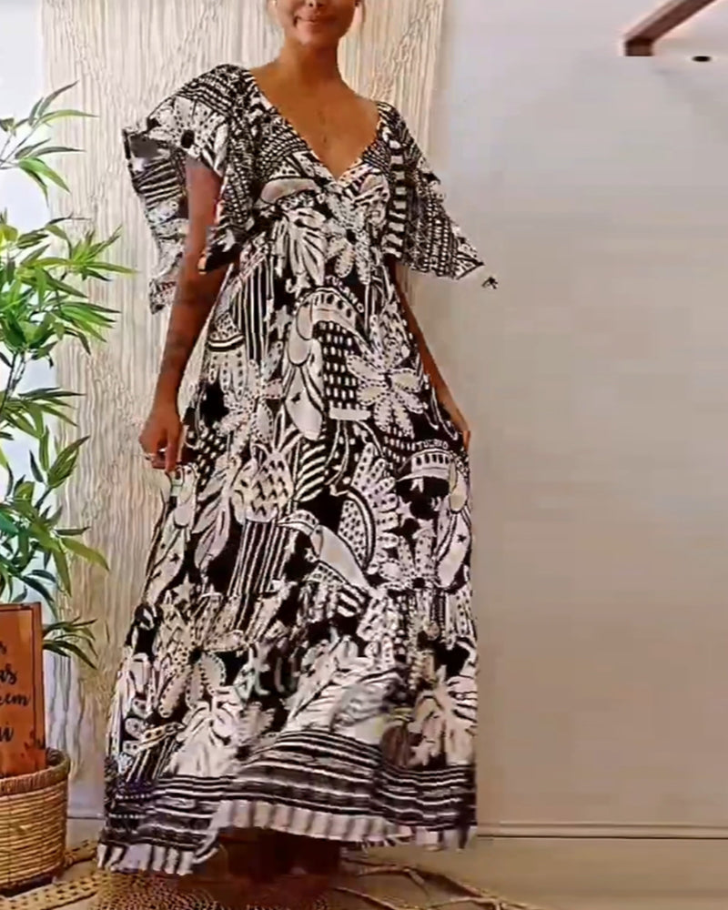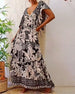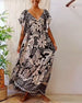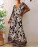 SPECIFICATIONS Style: Casual, Vacation Material: Cotton Blends Dress Type: A-Line Dress Length: Maxi Neckline: V neck_V Pattern Type: Print Sleeve Type: Slit Sleeves Sleeve Length: Short Sleeve Details: Backless, Lace Up Fit Type: Regular Season: Spring, Summer Occasion: Daily, Vacation Package Includes: 1 x Dress SIZE TABLE Size...