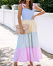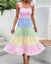 SPECIFICATIONS Style: Casual, Vacation Material: Cotton Blends Dress Type: A-Line Dress Length: Midi Neckline: Spaghetti Straps Pattern Type: Color Block Sleeve Length: Sleeveless Fit Type: Regular Season: Spring, Summer Occasion: Daily, Vacation Package Includes: 1 x Dress SIZE TABLE Size Bust Length CM INCH CM INCH S 95 37.40 1...