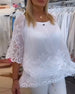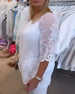 SPECIFICATIONS Top Type: Blouses Style: Casual Material: Cotton Blends Occasion: Daily Neckline: Round Neck Pattern Type: Solid Color Sleeve Type: Regular sleeve Sleeve Length: 3/4 Sleeve Fit Type: Regular Season: Spring, Summer Details: Hollow Out, Lace Package Includes: 1 x Blouse SIZE TABLE Size Bust Length CM INCH CM INCH...