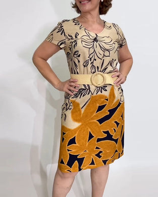 SPECIFICATIONS Style: Elegant Material: Cotton Blends Dress Type: Shift dress Dress Length: Knee Length Neckline: Round Neck Pattern Type: Floral Sleeve Type: Regular sleeve Sleeve Length: Short Sleeve Details: Lace Up Fit Type: Regular Season: Spring, Summer Occasion: Daily Package Includes: 1 x Dress Belt Not Included) SIZE TABLE Size...