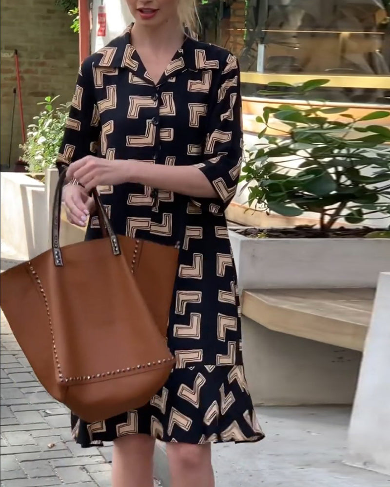 SPECIFICATIONS Style: Casual, Vacation, Business Material: Cotton Blends Dress Type: Shirt Dress Length: Knee Length Neckline: Shirt Collar Pattern Type: Print Sleeve Type: Regular sleeve Sleeve Length: 3/4 Sleeve Fit Type: Regular Season: Spring, Summer Occasion: Daily, Vacation, Work Package Includes: 1 x Dress SIZE TABLE Size ...