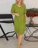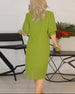 SPECIFICATIONS Style: Casual Material: Cotton Blends Dress Type: A-Line Dress Length: Midi Neckline: V neck_V Pattern Type: Solid Color Sleeve Type: Lantern Sleeve Sleeve Length: Half Sleeve Details: Slit, Shirred Fit Type: Regular Season: Summer Occasion: Daily, Vacation Package Includes: 1 x Dress (With Belt) SIZE TABLE Size Bu...