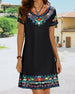 SPECIFICATIONS Style: Casual, Vintage Material: Cotton Blends Dress Type: Shift dress Dress Length: Knee Length Neckline: V neck_V Pattern Type: Print Sleeve Type: Regular sleeve Sleeve Length: Short Sleeve Fit Type: Regular Season: Spring, Summer Occasion: Daily, Vacation Package Includes: 1 x Dress SIZE TABLE Size Bust Length ...