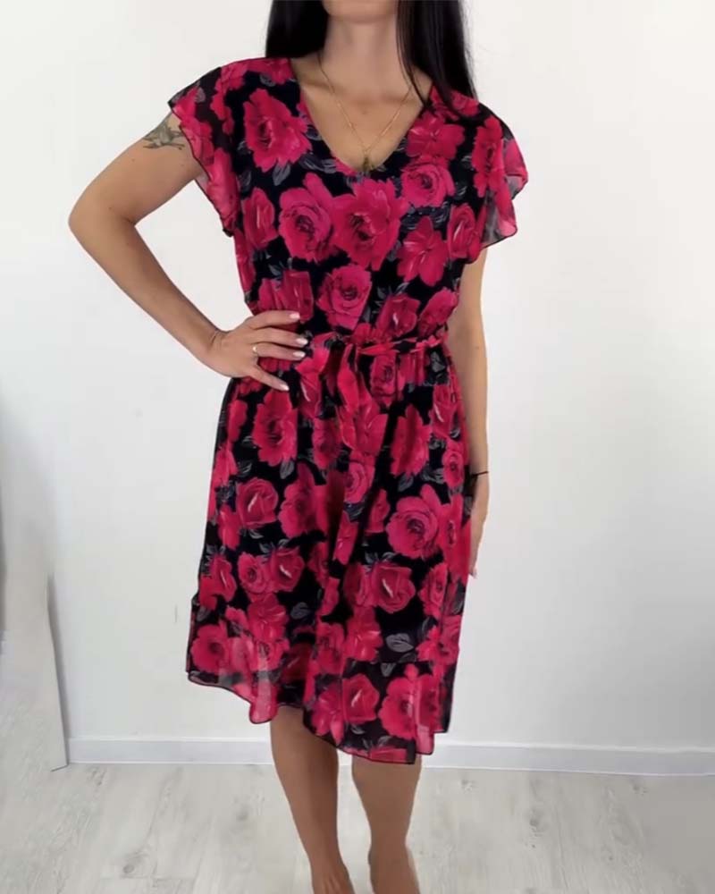 SPECIFICATIONS Style: Casual Material: 5% Spandex, 95% Polyester Dress Type: A-Line Dress Length: Knee Length Neckline: V neck_V Pattern Type: Floral Sleeve Type: Regular sleeve Sleeve Length: Half Sleeve Fit Type: Loose Season: Spring, Summer Occasion: Daily, Vacation Package Includes: 1 x Dress SIZE TABLE Size Bust Leng...
