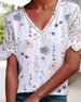 SPECIFICATIONS Top Type: Blouses Style: Casual, Elegant, Cottagecore Material: Cotton Blends Occasion: Daily, Vacation Neckline: V neck_V Pattern Type: Floral Sleeve Type: Regular sleeve Sleeve Length: Short Sleeve Fit Type: Regular Season: Spring, Summer Details: Lace Package Includes: 1 x Blouse SIZE TABLE Size Biust Length CM INCH ...