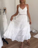 SPECIFICATIONS Style: Elegant Material: Cotton Blends Dress Type: A-Line, Cami Dress Length: Midi Neckline: Spaghetti Straps Pattern Type: Solid Color Sleeve Length: Sleeveless Details: Backless, Ruffle Fit Type: Regular Season: Spring, Summer Occasion: Daily, Vacation Package Includes: 1 x Dress SIZE TABLE Size Bust Length CM INC...
