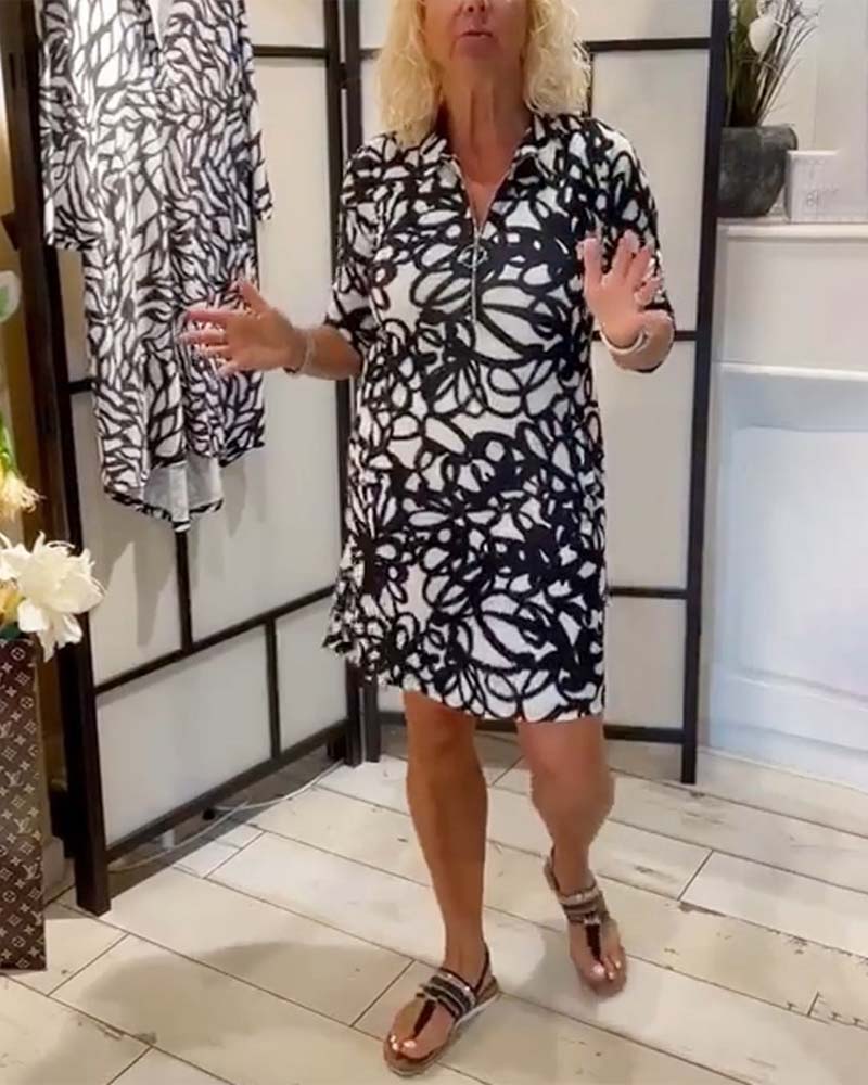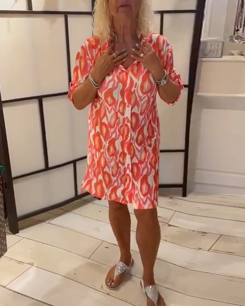 SPECIFICATIONS Style: Casual Material: 5% Spandex, 95% Polyester Dress Type: Shirt, Shift dress Dress Length: Above-knee Neckline: Lapel Pattern Type: Print Sleeve Type: Regular sleeve Sleeve Length: Half Sleeve Fit Type: Regular Season: Spring, Summer Occasion: Daily Package Includes: 1 x Dress SIZE TABLE Size Bust Lengt...