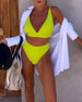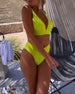 SPECIFICATIONS Style: Vacation, Sexy Material: 82% Chinlon, 18% Spandex Occasion: Vacation, Party Neckline: V neck_V Pattern Type: Solid Color Sleeve Length: Sleeveless Top Type: Bikini Bottom Type: High Cut Fit Type: Skinny Season: Spring, Summer Package Includes: 1 x Bikini SIZE TABLE Size Bust Waist Hip Under bust CM INCH CM INCH CM INC...