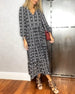 SPECIFICATIONS Style: Elegant Material: Cotton Blends Dress Type: A-Line Dress Length: Midi Neckline: V neck_V Pattern Type: Geometric Print Sleeve Type: Regular sleeve Sleeve Length: 3/4 Sleeve Details: Pocket Fit Type: Regular Season: Spring, Summer, Fall Occasion: Daily Package Includes: 1 x Dress SIZE TABLE Size Bust Length ...