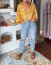 SPECIFICATIONS Top Type: Blouses Style: Casual Material: Cotton Blends Occasion: Daily Neckline: V neck_V Pattern Type: Floral Sleeve Type: Puff Sleeve Sleeve Length: 3/4 Sleeve Fit Type: Regular Season: Spring, Summer Details: Buttons Package Includes: 1 x Blouse SIZE TABLE Size Bust Length CM INCH CM INCH S 95 37.40 68 26.7...