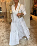 SPECIFICATIONS Style: Casual, Elegant Material: Cotton Blends Dress Type: A-Line Dress Length: Maxi Neckline: Lapel Pattern Type: Solid Color Sleeve Type: Regular sleeve Sleeve Length: Long Sleeve Details: Shirred Fit Type: Regular Season: Spring, Summer Occasion: Daily, Vacation Package Includes: 1 x Dress SIZE TABLE Size B...