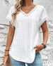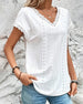 SPECIFICATIONS Top Type: T-shirt Style: Chic, Elegant Material: 100% Polyester Occasion: Daily, Vacation Neckline: V neck_V Pattern Type: Solid Color Sleeve Type: Regular sleeve Sleeve Length: Short Sleeve Fit Type: Loose Season: Spring, Summer Details: Lace Package Includes: 1 x T-shirt SIZE TABLE Size Bust Length CM INCH C...