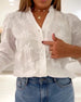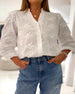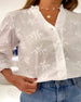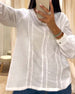 SPECIFICATIONS Top Type: Blouses Style: Elegant Material: Cotton Blends Occasion: Daily, Work Neckline: Round Neck Pattern Type: Solid Color Sleeve Type: Regular sleeve Sleeve Length: 3/4 Sleeve Fit Type: Regular Season: Spring, Summer, Fall Details: Buttons, Embroidered Package Includes: 1 x Blouse SIZE TABLE Size Bust Leng...