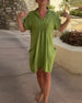 SPECIFICATIONS Style: Casual Material: Cotton Blends Dress Type: A-Line Dress Length: Above-knee Neckline: V neck_V Pattern Type: Solid Color Sleeve Type: Ruffle Sleeve Sleeve Length: Short Sleeve Fit Type: Loose Season: Spring, Summer Occasion: Daily, Vacation Package Includes: 1 x Dress Belt Not Included) SIZE TABLE Size Waist Length ...