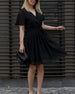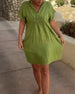 SPECIFICATIONS Style: Casual, Business Material: Cotton Blends Dress Type: A-Line Dress Length: Knee Length Neckline: V neck_V Pattern Type: Solid Color Sleeve Type: Regular sleeve Sleeve Length: Short Sleeve Details: Shirred Fit Type: Regular Season: Spring, Summer Occasion: Daily, Work Package Includes: 1 x Dress SIZE TABLE Si...