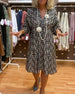 SPECIFICATIONS Style: Elegant Material: Cotton Blends Dress Type: A-Line Dress Length: Midi Neckline: V neck_V Pattern Type: Print Sleeve Type: Regular sleeve Sleeve Length: 3/4 Sleeve Details: Shirred, Drawstring Fit Type: Regular Season: Spring, Summer, Fall Occasion: Daily, Work Package Includes: 1 x Dress SIZE TABLE Size Bu...