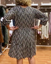 SPECIFICATIONS Style: Casual, Business Material: 5% Spandex, 95% Polyester Dress Type: A-Line Dress Length: Knee Length Neckline: V neck_V Pattern Type: Geometric Print Sleeve Type: Lantern Sleeve Sleeve Length: 3/4 Sleeve Details: Patchwork Fit Type: Regular Season: Spring, Summer, Fall Occasion: Daily, Work Package Includes: 1 x Dress SI...