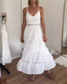 SPECIFICATIONS Style: Elegant Material: Cotton Blends Dress Type: A-Line, Cami Dress Length: Midi Neckline: Spaghetti Straps Pattern Type: Solid Color Sleeve Length: Sleeveless Details: Backless, Ruffle Fit Type: Regular Season: Spring, Summer Occasion: Daily, Vacation Package Includes: 1 x Dress SIZE TABLE Size Bust Length CM INC...