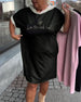 SPECIFICATIONS Style: Casual Material: Cotton Blends Dress Type: T-shirt Dress Length: Midi Neckline: Round Neck Pattern Type: Solid Color Sleeve Type: Regular sleeve Sleeve Length: Half Sleeve Details: Lace Fit Type: Regular Season: Spring,Summer Occasion: Daily Package Includes: 1 x Dress SIZE TABLE Size Bust Length CM INCH CM IN...