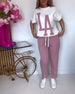 SPECIFICATIONS Style: Casual Top Type: Blouses Category: Sets Material: Cotton Blends Pattern Type: Letter,Print Neckline: Round Neck Sleeve Length: Short Sleeve Pants Type: Sweatpant Pants Length: Long Waist Type: Mid Waist Fit Type: Regular Season: Spring,Summer Details: Pocket,Drawstring Occasion: Daily Package Includes: 1 x Blouse, 1 x Pan...