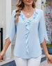 Half-Sleeved Ruffled Solid Color Casual Blouse