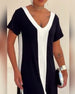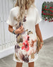 V-Neck Solid Color Three-Button Short-Sleeved Dress